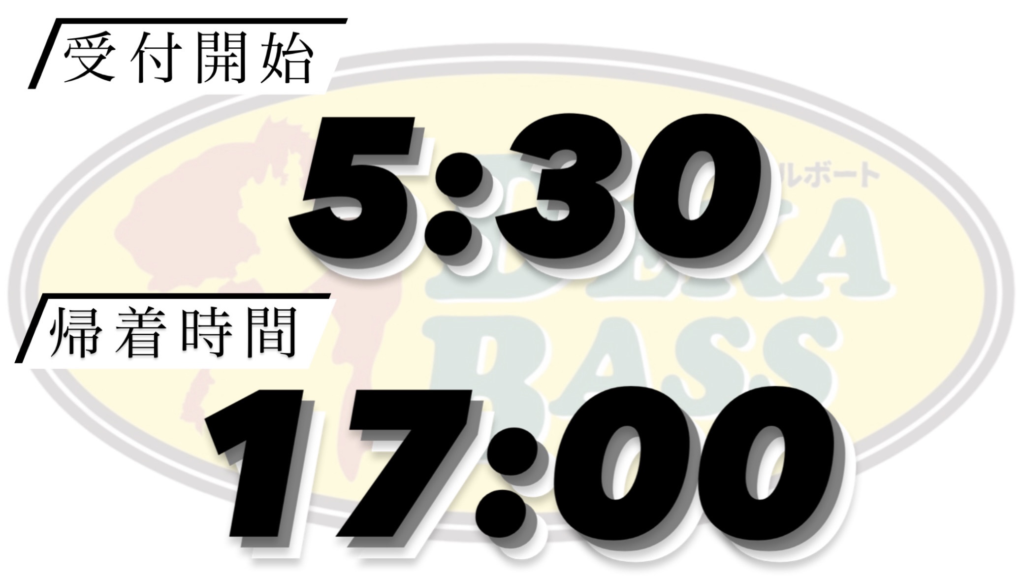 | コメント | こんにちは😃DEKABASSです。 9月営業時間 受付開始5:30 帰着時間 17:00 | ||